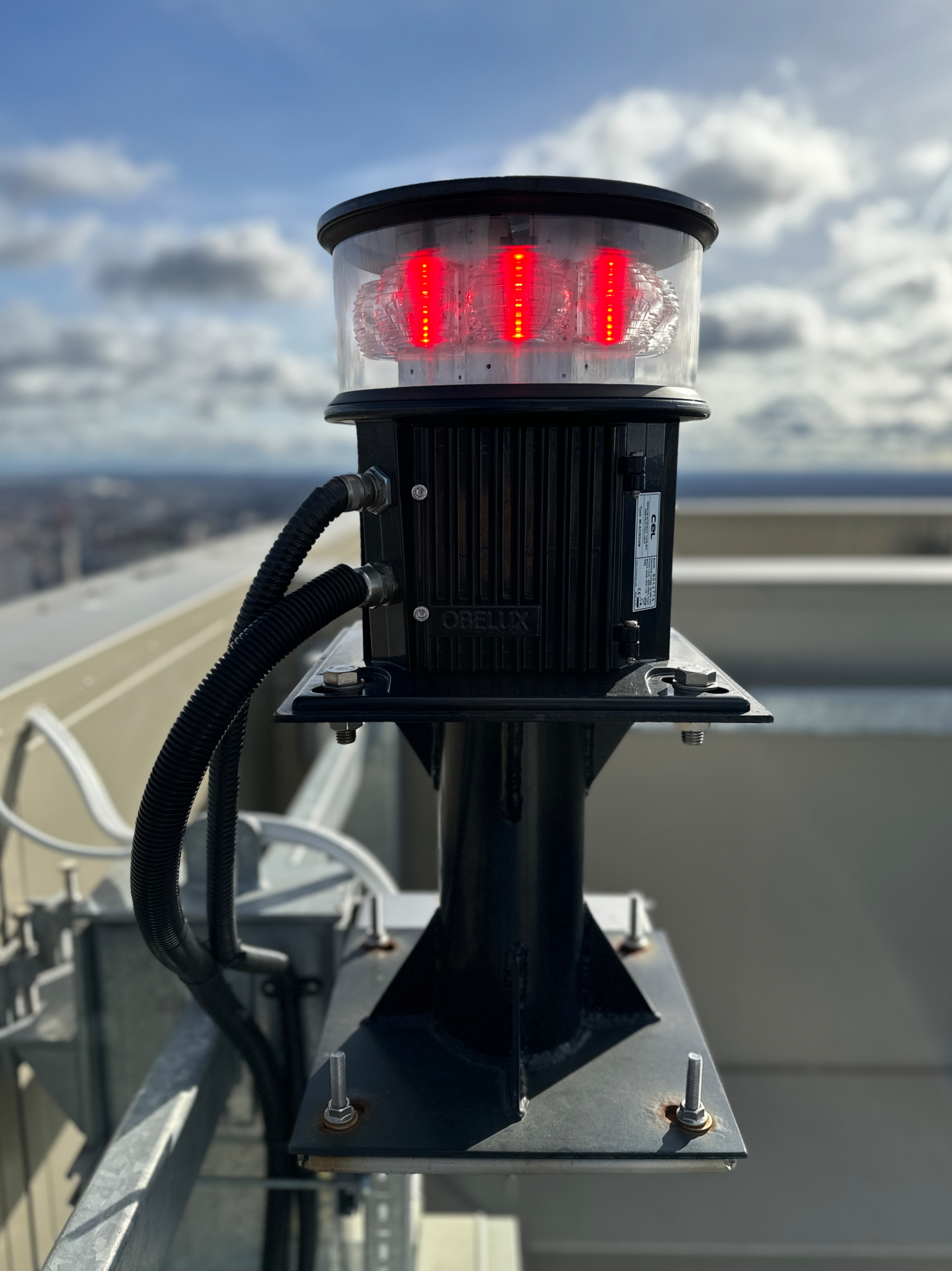 Robust CEL aviation lights compliant to CAA / EASA / ICAO installed complete with inbuilt BMS fault monitoring, WIFI monitoring and 3hr UPS battery backup.
